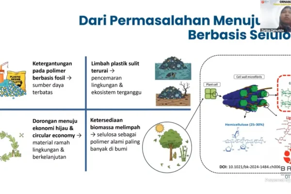 Tangerang Selatan-Humas BRIN. Badan Riset dan Inovasi Nasional (BRIN) melalui Organisasi Riset Nanoteknologi dan Material (ORNAMAT) menegaskan komitmennya dalam memperkuat riset material inovatif berbasis sumber daya alam. Dua fokus riset terbaru yang dipresentasikan adalah pengembangan Dialdehida Selulosa (DAC) sebagai material ramah lingkungan dan material pelindung interferensi elektromagnetik (EMI shielding) berbasis lateks karet alam dengan tambahan…