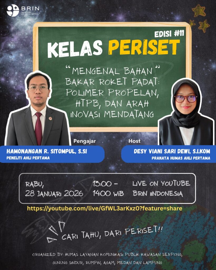 Hai #KawanBRIN, Yuk Kita Cari Tahu dari Periset! 🔎 Apa yang membuat roket bisa melesat ribuan kilometer hanya dalam hitungan detik?Bukan sulap. Bukan sihir. Jawabannya adalah bahan bakar roket yang menghasilkan daya dorong luar biasa. Dari misi antariksa, sistem pertahanan, hingga inovasi material masa depan, bahan bakar roket padat memegang peran krusial dalam dunia kedirgantaraan….
