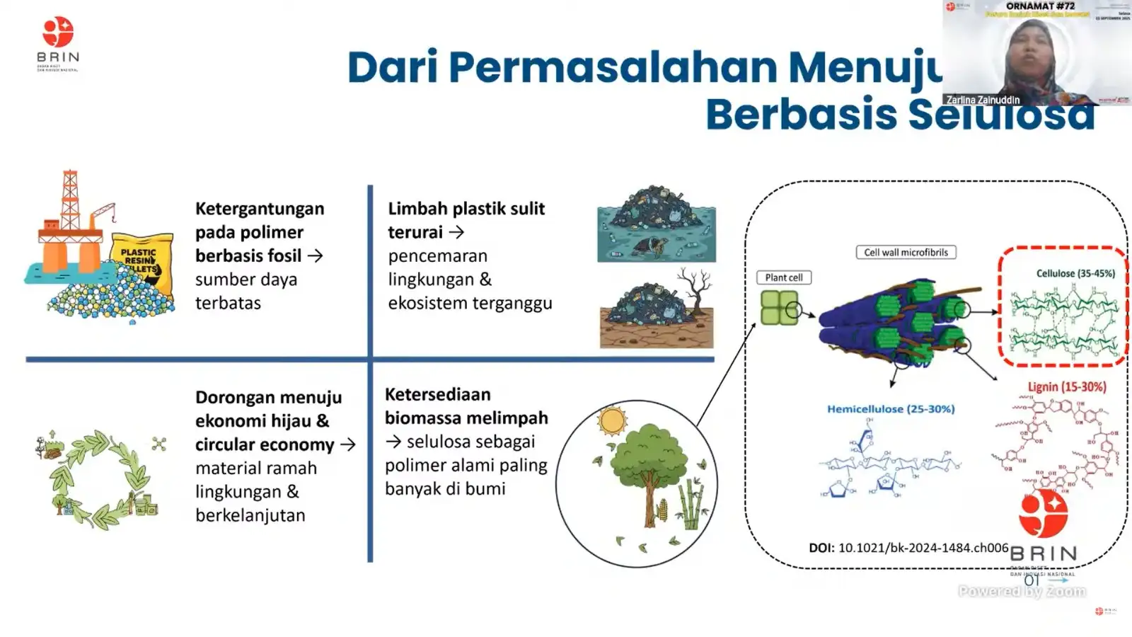 Tangerang Selatan-Humas BRIN. Badan Riset dan Inovasi Nasional (BRIN) melalui Organisasi Riset Nanoteknologi dan Material (ORNAMAT) menegaskan komitmennya dalam memperkuat riset material inovatif berbasis sumber daya alam. Dua fokus riset terbaru yang dipresentasikan adalah pengembangan Dialdehida Selulosa (DAC) sebagai material ramah lingkungan dan material pelindung interferensi elektromagnetik (EMI shielding) berbasis lateks karet alam dengan tambahan grafit dan magnetit.