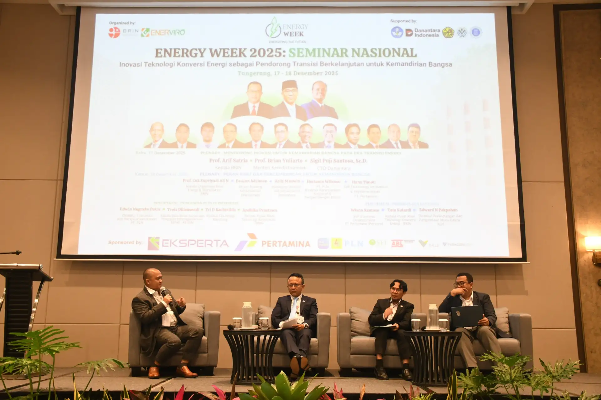 Tangerang Selatan – Humas BRIN. Badan Riset dan Inovasi Nasional pada Energy Week hari kedua, Kamis (18/12) kembali menegaskan pentingnya sinergi antara riset, industri, dan kebijakan dalam mendorong transisi energi nasional yang berkelanjutan. Pemerintah, lembaga riset, dan BUMN sepakat bahwa inovasi teknologi harus mampu menjawab tantangan nyata, mulai dari dekarbonisasi hingga pertumbuhan ekonomi nasional.